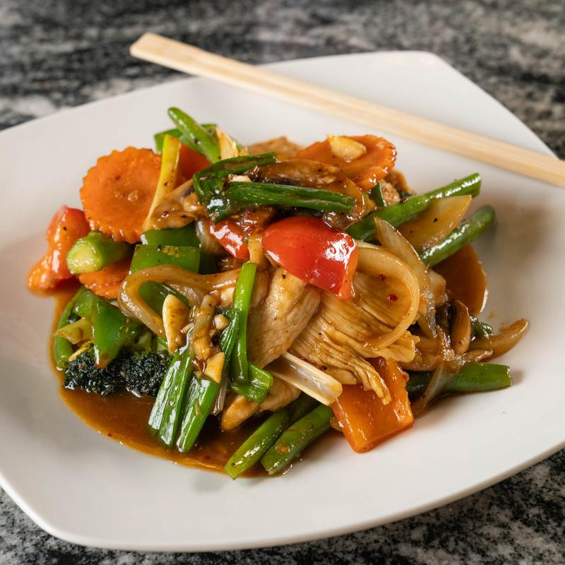 Asparagus, green beans, bok choy, zucchini, squash, with a choice of curry or sweet & sour sauce